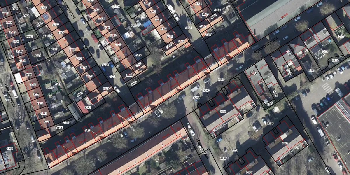 Het perceel waarop Agnietenstraat 118 staat heeft een oppervlakte van 2401 m². Dit is een zeer groot perceel. De perceeloppervlakte wordt geregistreerd door het Kadaster. Gedetailleerde informatie over de maten van dit perceel kunt u vinden in het rapport Kadastrale kaart met maatvoering van Agnietenstraat 118.