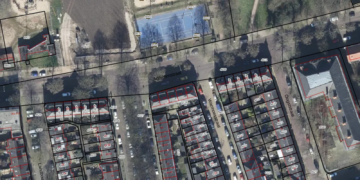 Het perceel waarop Agnietenstraat 257 staat heeft een oppervlakte van 305 m². Dit is een groot perceel. De perceeloppervlakte wordt geregistreerd door het Kadaster. Gedetailleerde informatie over de maten van dit perceel kunt u vinden in het rapport Kadastrale kaart met maatvoering van Agnietenstraat 257.