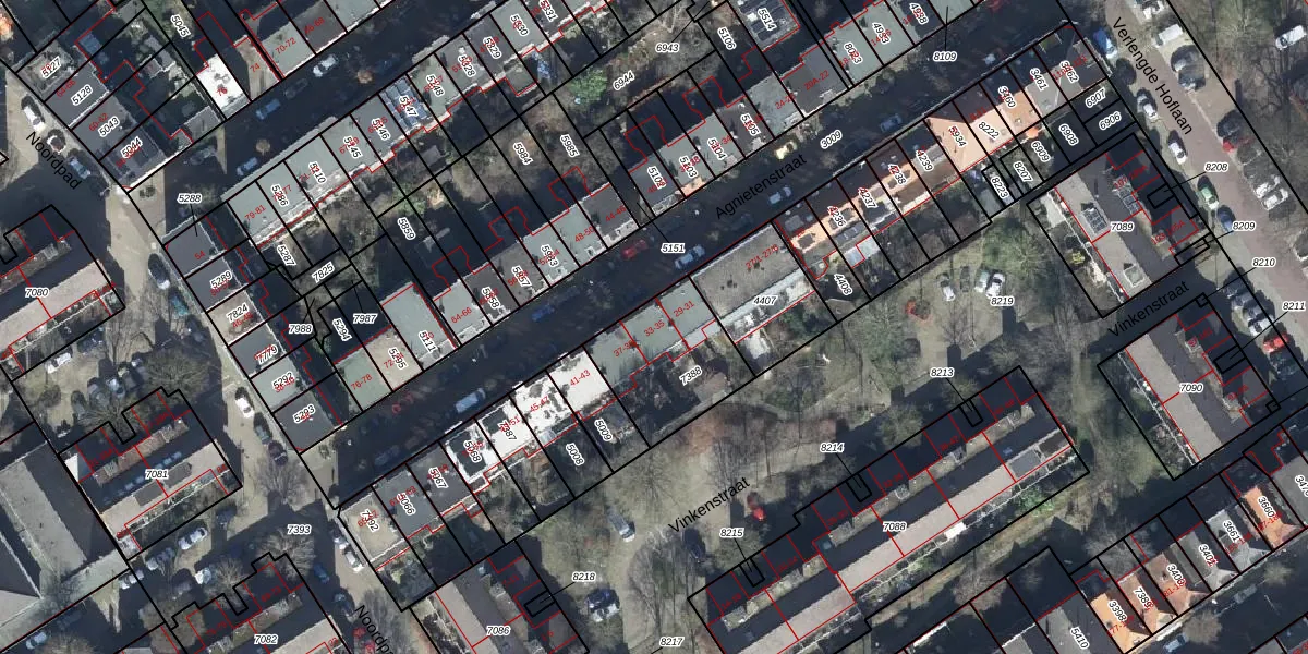 Het perceel waarop Agnietenstraat 35 staat heeft een oppervlakte van 365 m². Dit is een groot perceel. De perceeloppervlakte wordt geregistreerd door het Kadaster. Gedetailleerde informatie over de maten van dit perceel kunt u vinden in het rapport Kadastrale kaart met maatvoering van Agnietenstraat 35.