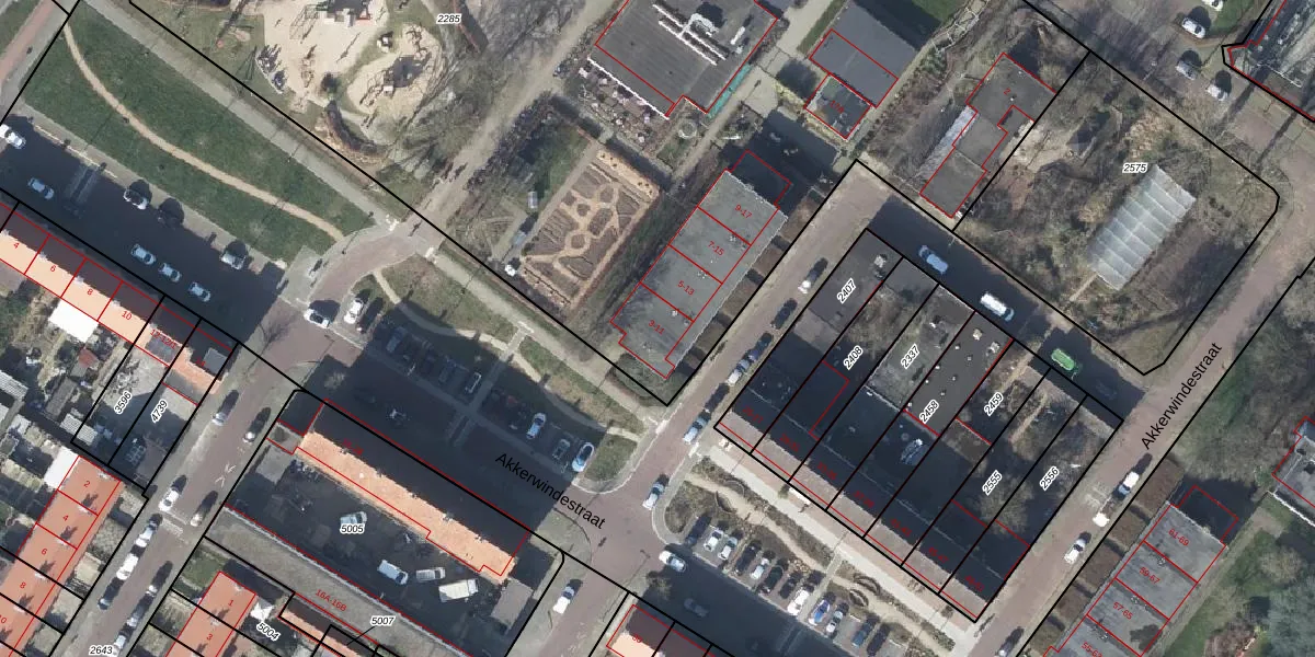 Het perceel waarop Akkerwindestraat 11 staat heeft een oppervlakte van 9561 m². Dit is een zeer groot perceel. De perceeloppervlakte wordt geregistreerd door het Kadaster. Gedetailleerde informatie over de maten van dit perceel kunt u vinden in het rapport Kadastrale kaart met maatvoering van Akkerwindestraat 11.