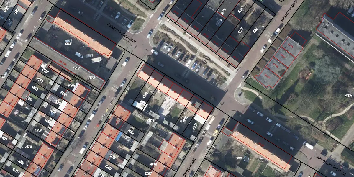 Het perceel waarop Akkerwindestraat 36 staat heeft een oppervlakte van 1688 m². Dit is een zeer groot perceel. De perceeloppervlakte wordt geregistreerd door het Kadaster. Gedetailleerde informatie over de maten van dit perceel kunt u vinden in het rapport Kadastrale kaart met maatvoering van Akkerwindestraat 36.