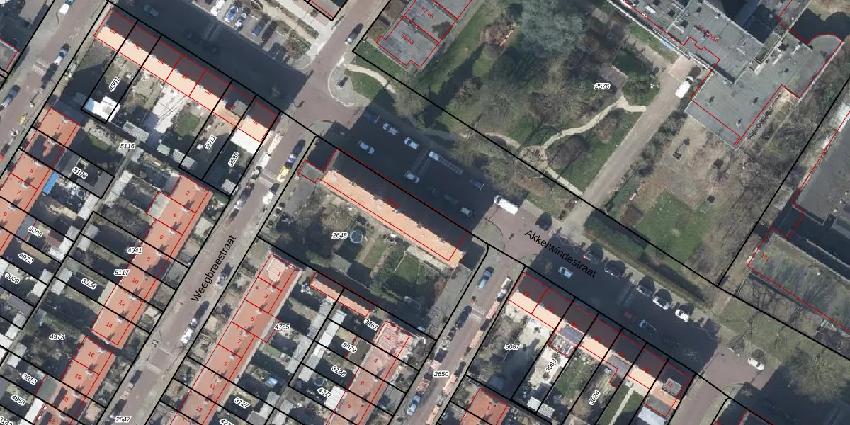 Het perceel waarop Akkerwindestraat 56 staat heeft een oppervlakte van 1320 m². Dit is een zeer groot perceel. De perceeloppervlakte wordt geregistreerd door het Kadaster. Gedetailleerde informatie over de maten van dit perceel kunt u vinden in het rapport Kadastrale kaart met maatvoering van Akkerwindestraat 56.