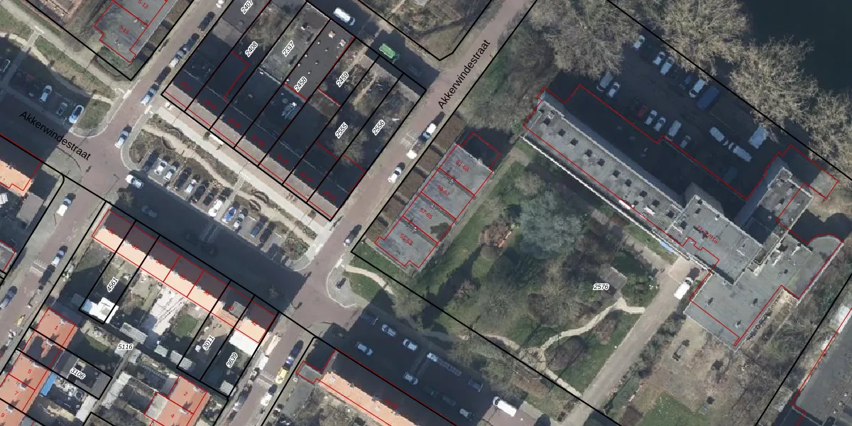 Het perceel waarop Akkerwindestraat 65 staat heeft een oppervlakte van 7960 m². Dit is een zeer groot perceel. De perceeloppervlakte wordt geregistreerd door het Kadaster. Gedetailleerde informatie over de maten van dit perceel kunt u vinden in het rapport Kadastrale kaart met maatvoering van Akkerwindestraat 65.