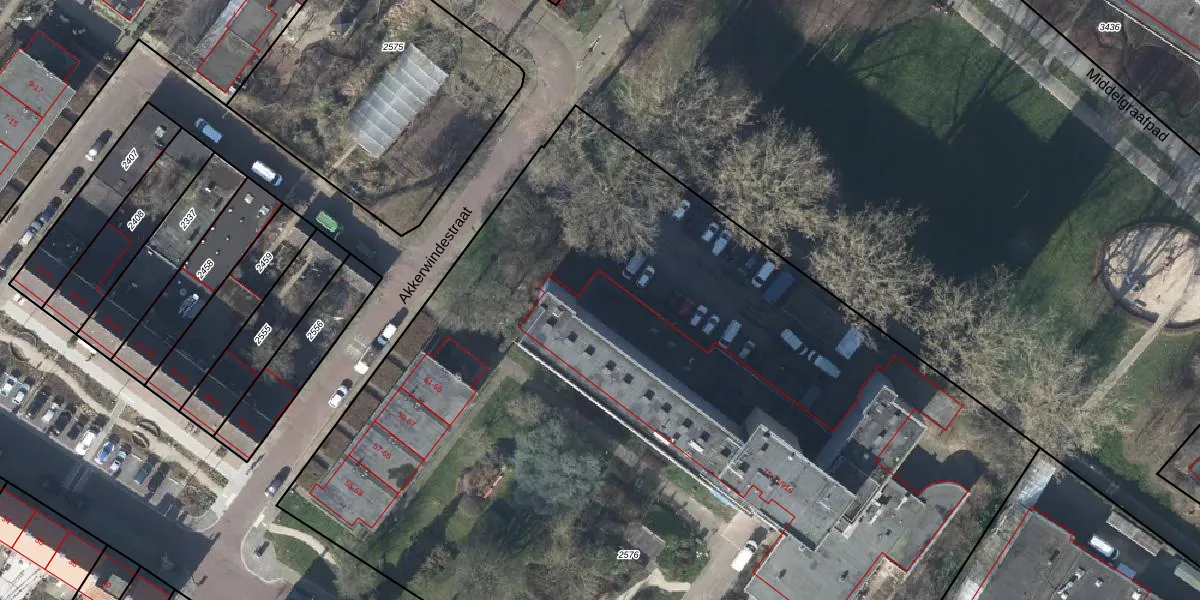 Het perceel waarop Akkerwindestraat 71-901 staat heeft een oppervlakte van 7960 m². Dit is een zeer groot perceel. De perceeloppervlakte wordt geregistreerd door het Kadaster. Gedetailleerde informatie over de maten van dit perceel kunt u vinden in het rapport Kadastrale kaart met maatvoering van Akkerwindestraat 71-901.