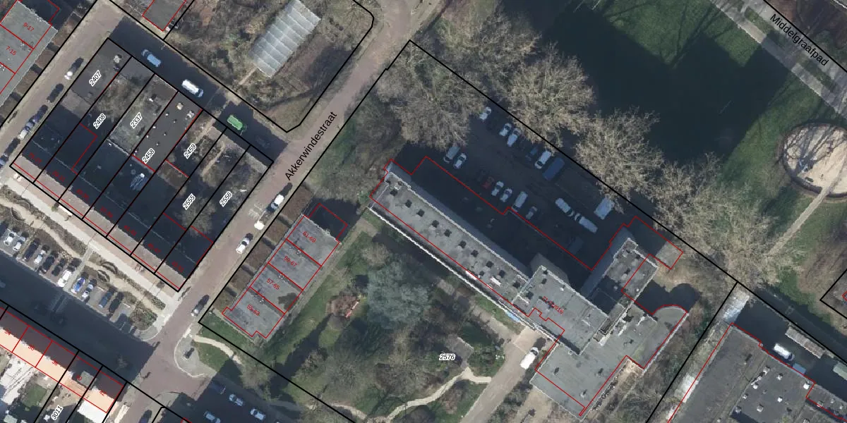 Het perceel waarop Akkerwindestraat 71-803 staat heeft een oppervlakte van 7960 m². Dit is een zeer groot perceel. De perceeloppervlakte wordt geregistreerd door het Kadaster. Gedetailleerde informatie over de maten van dit perceel kunt u vinden in het rapport Kadastrale kaart met maatvoering van Akkerwindestraat 71-803.