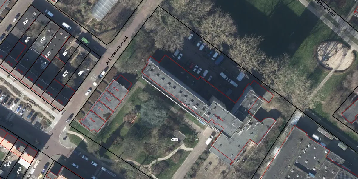 Het perceel waarop Akkerwindestraat 71-807 staat heeft een oppervlakte van 7960 m². Dit is een zeer groot perceel. De perceeloppervlakte wordt geregistreerd door het Kadaster. Gedetailleerde informatie over de maten van dit perceel kunt u vinden in het rapport Kadastrale kaart met maatvoering van Akkerwindestraat 71-807.