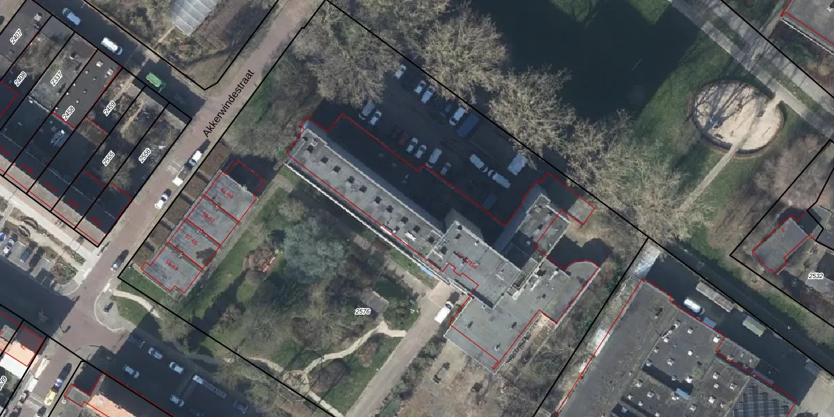 Het perceel waarop Akkerwindestraat 71-408 staat heeft een oppervlakte van 7960 m². Dit is een zeer groot perceel. De perceeloppervlakte wordt geregistreerd door het Kadaster. Gedetailleerde informatie over de maten van dit perceel kunt u vinden in het rapport Kadastrale kaart met maatvoering van Akkerwindestraat 71-408.