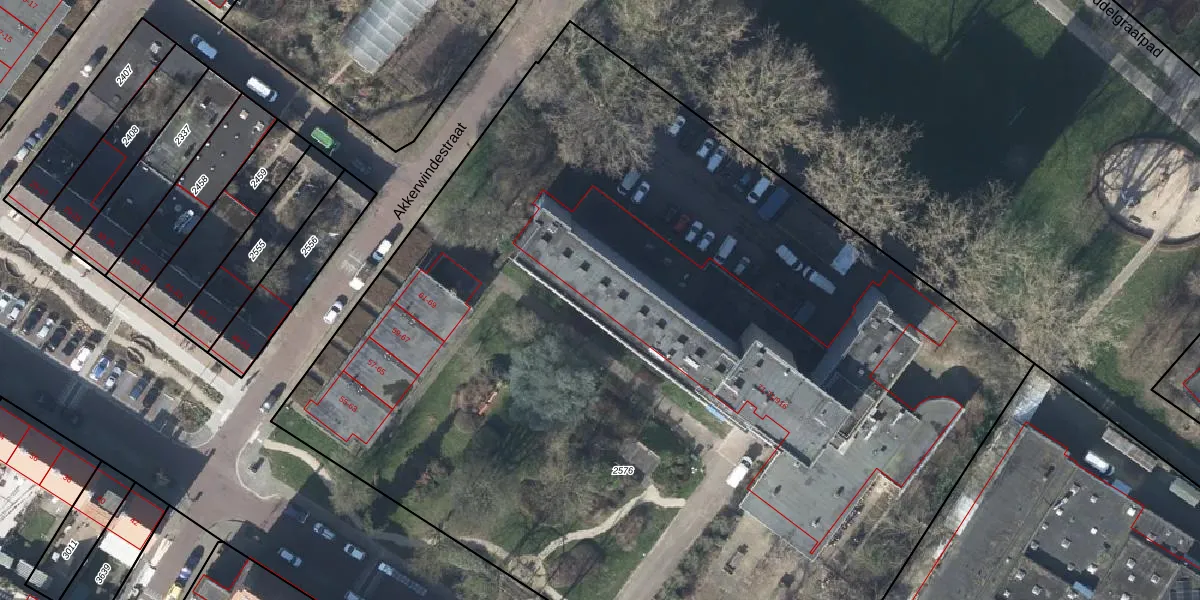 Het perceel waarop Akkerwindestraat 71-8 staat heeft een oppervlakte van 7960 m². Dit is een zeer groot perceel. De perceeloppervlakte wordt geregistreerd door het Kadaster. Gedetailleerde informatie over de maten van dit perceel kunt u vinden in het rapport Kadastrale kaart met maatvoering van Akkerwindestraat 71-8.