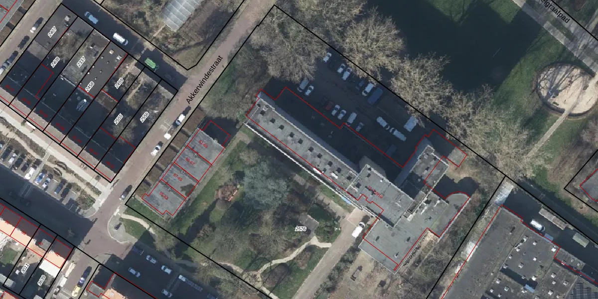 Het perceel waarop Akkerwindestraat 71-109 staat heeft een oppervlakte van 7960 m². Dit is een zeer groot perceel. De perceeloppervlakte wordt geregistreerd door het Kadaster. Gedetailleerde informatie over de maten van dit perceel kunt u vinden in het rapport Kadastrale kaart met maatvoering van Akkerwindestraat 71-109.