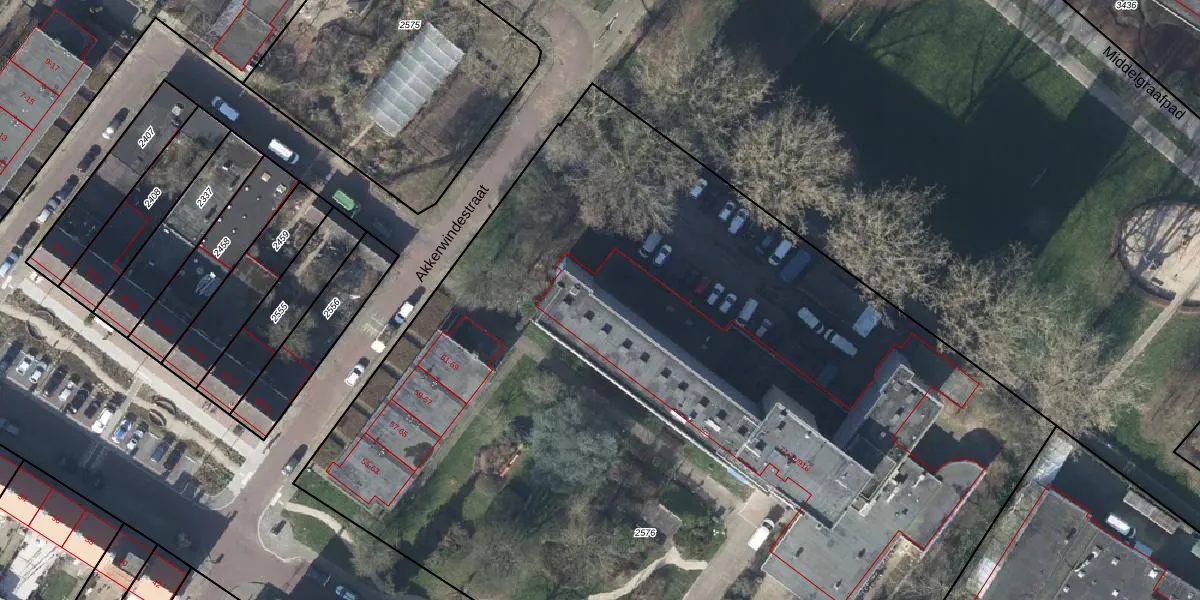 Het perceel waarop Akkerwindestraat 71-602 staat heeft een oppervlakte van 7960 m². Dit is een zeer groot perceel. De perceeloppervlakte wordt geregistreerd door het Kadaster. Gedetailleerde informatie over de maten van dit perceel kunt u vinden in het rapport Kadastrale kaart met maatvoering van Akkerwindestraat 71-602.