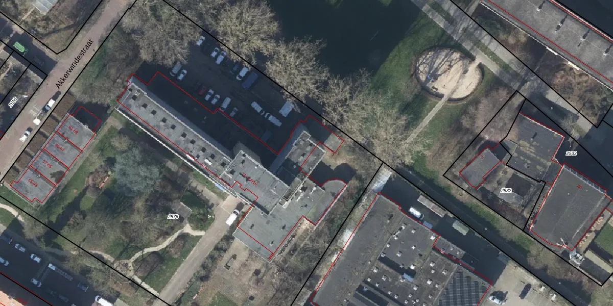 Het perceel waarop Akkerwindestraat 71-614 staat heeft een oppervlakte van 7960 m². Dit is een zeer groot perceel. De perceeloppervlakte wordt geregistreerd door het Kadaster. Gedetailleerde informatie over de maten van dit perceel kunt u vinden in het rapport Kadastrale kaart met maatvoering van Akkerwindestraat 71-614.