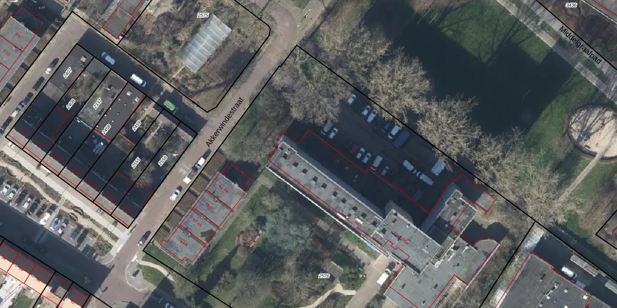 Het perceel waarop Akkerwindestraat 71-702 staat heeft een oppervlakte van 7960 m². Dit is een zeer groot perceel. De perceeloppervlakte wordt geregistreerd door het Kadaster. Gedetailleerde informatie over de maten van dit perceel kunt u vinden in het rapport Kadastrale kaart met maatvoering van Akkerwindestraat 71-702.