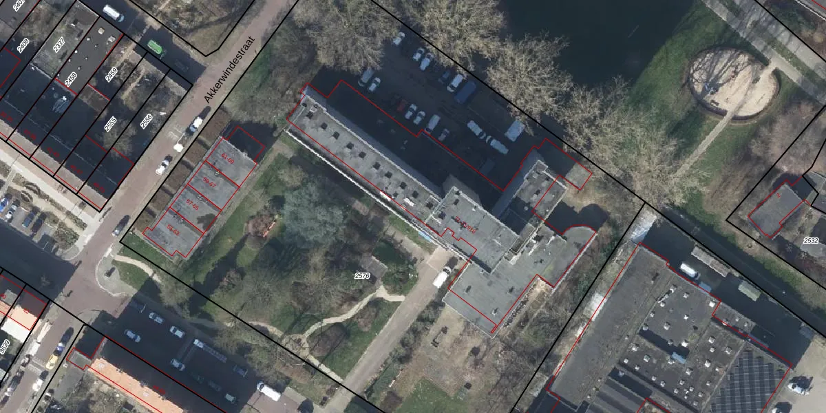 Het perceel waarop Akkerwindestraat 71-501 staat heeft een oppervlakte van 7960 m². Dit is een zeer groot perceel. De perceeloppervlakte wordt geregistreerd door het Kadaster. Gedetailleerde informatie over de maten van dit perceel kunt u vinden in het rapport Kadastrale kaart met maatvoering van Akkerwindestraat 71-501.