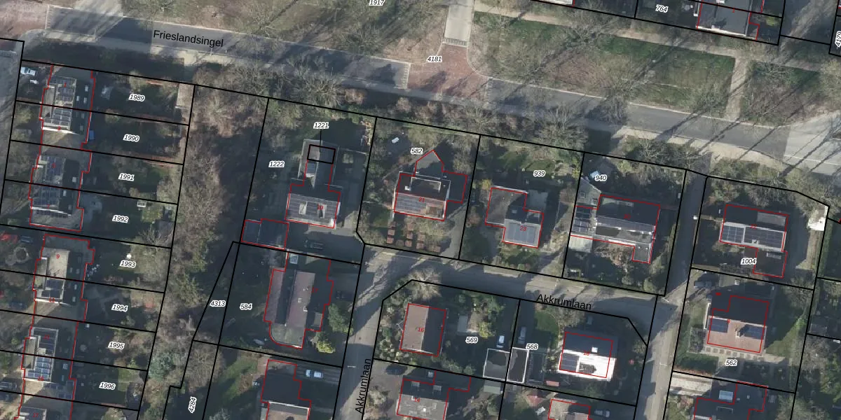 Het perceel waarop Akkrumlaan 21 staat heeft een oppervlakte van 748 m². Dit is een groot perceel. De perceeloppervlakte wordt geregistreerd door het Kadaster. Gedetailleerde informatie over de maten van dit perceel kunt u vinden in het rapport Kadastrale kaart met maatvoering van Akkrumlaan 21.