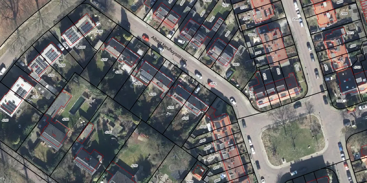 Gebruik de zoekbalk of klik op een perceel voor informatie over de adressen binnen dit perceel.