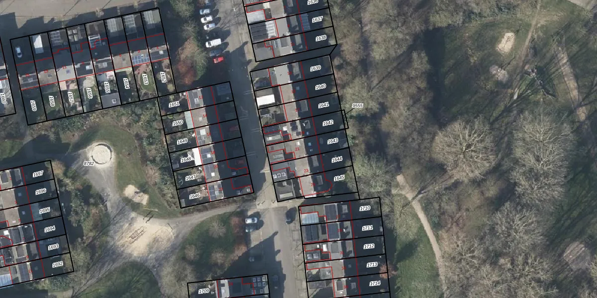 Gebruik de zoekbalk of klik op een perceel voor informatie over de adressen binnen dit perceel.