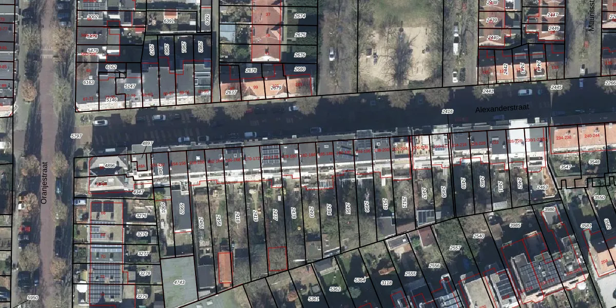 Het perceel waarop Alexanderstraat 184 staat heeft een oppervlakte van 222 m². Dit is een middelgroot perceel. De perceeloppervlakte wordt geregistreerd door het Kadaster. Gedetailleerde informatie over de maten van dit perceel kunt u vinden in het rapport Kadastrale kaart met maatvoering van Alexanderstraat 184.