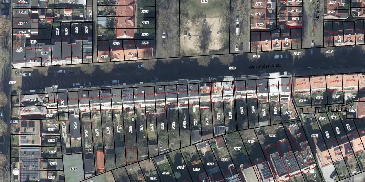 Het perceel waarop Alexanderstraat 196 staat heeft een oppervlakte van 197 m². Dit is een middelgroot perceel. De perceeloppervlakte wordt geregistreerd door het Kadaster. Gedetailleerde informatie over de maten van dit perceel kunt u vinden in het rapport Kadastrale kaart met maatvoering van Alexanderstraat 196.
