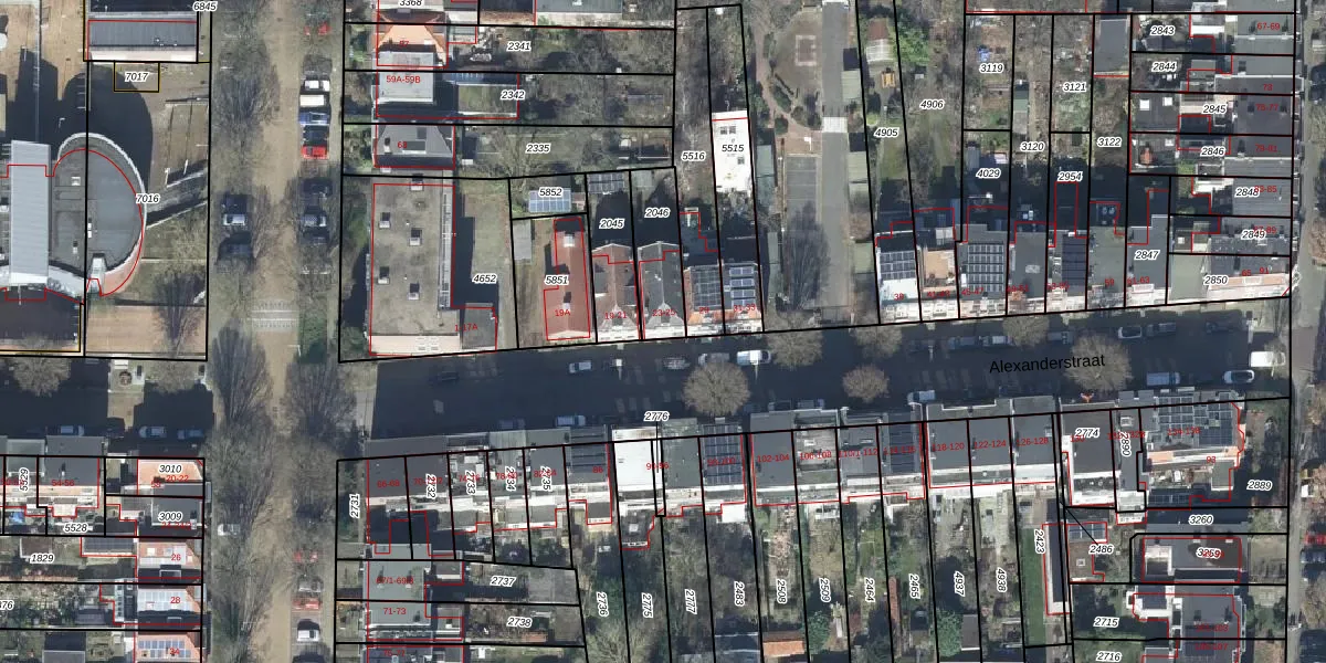 Het perceel waarop Alexanderstraat 23 staat heeft een oppervlakte van 180 m². Dit is een middelgroot perceel. De perceeloppervlakte wordt geregistreerd door het Kadaster. Gedetailleerde informatie over de maten van dit perceel kunt u vinden in het rapport Kadastrale kaart met maatvoering van Alexanderstraat 23.