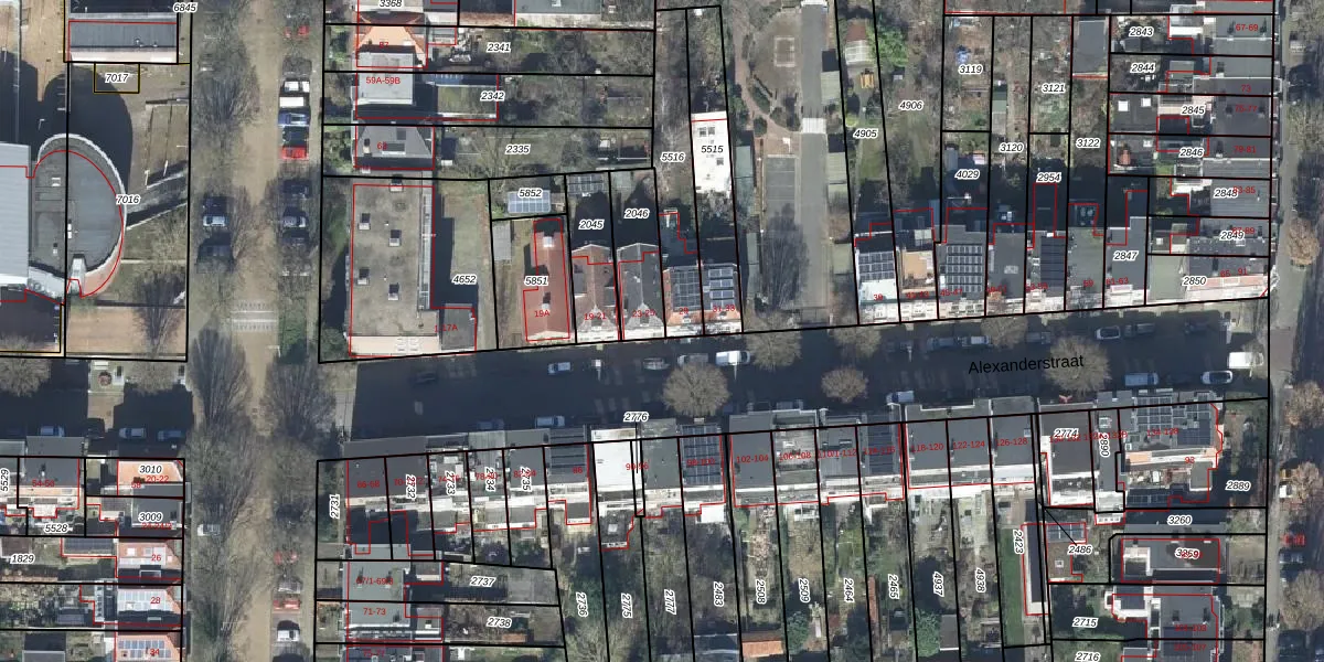 Het perceel waarop Alexanderstraat 25 staat heeft een oppervlakte van 180 m². Dit is een middelgroot perceel. De perceeloppervlakte wordt geregistreerd door het Kadaster. Gedetailleerde informatie over de maten van dit perceel kunt u vinden in het rapport Kadastrale kaart met maatvoering van Alexanderstraat 25.