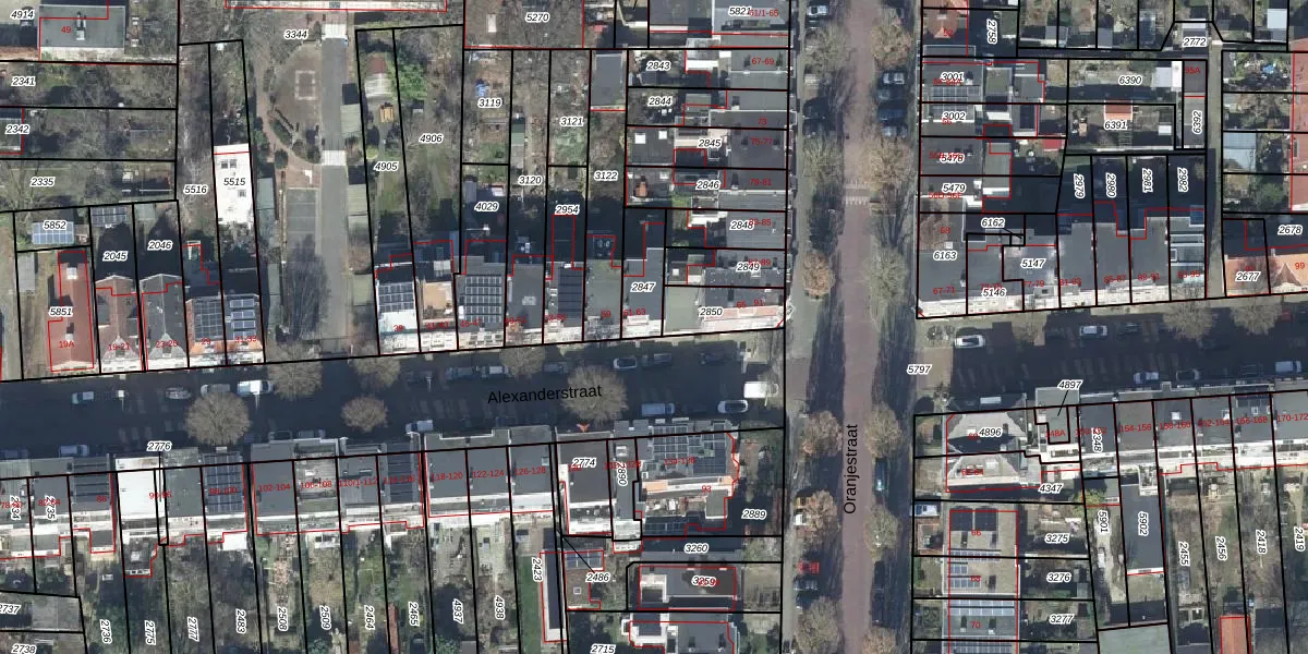 Het perceel waarop Alexanderstraat 63 staat heeft een oppervlakte van 121 m². Dit is een middelgroot perceel. De perceeloppervlakte wordt geregistreerd door het Kadaster. Gedetailleerde informatie over de maten van dit perceel kunt u vinden in het rapport Kadastrale kaart met maatvoering van Alexanderstraat 63.