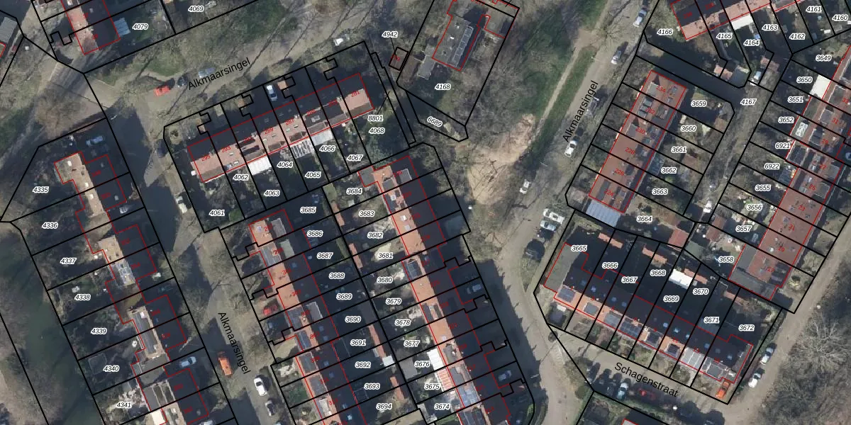Gebruik de zoekbalk of klik op een perceel voor informatie over de adressen binnen dit perceel.