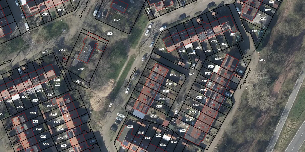 Gebruik de zoekbalk of klik op een perceel voor informatie over de adressen binnen dit perceel.