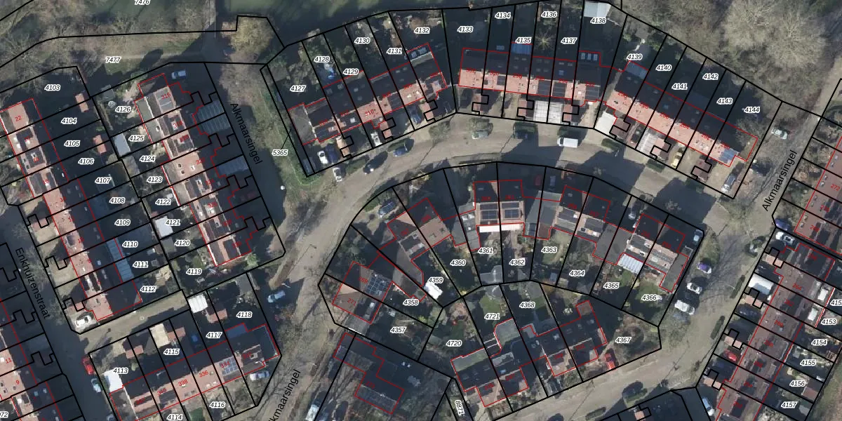 Gebruik de zoekbalk of klik op een perceel voor informatie over de adressen binnen dit perceel.