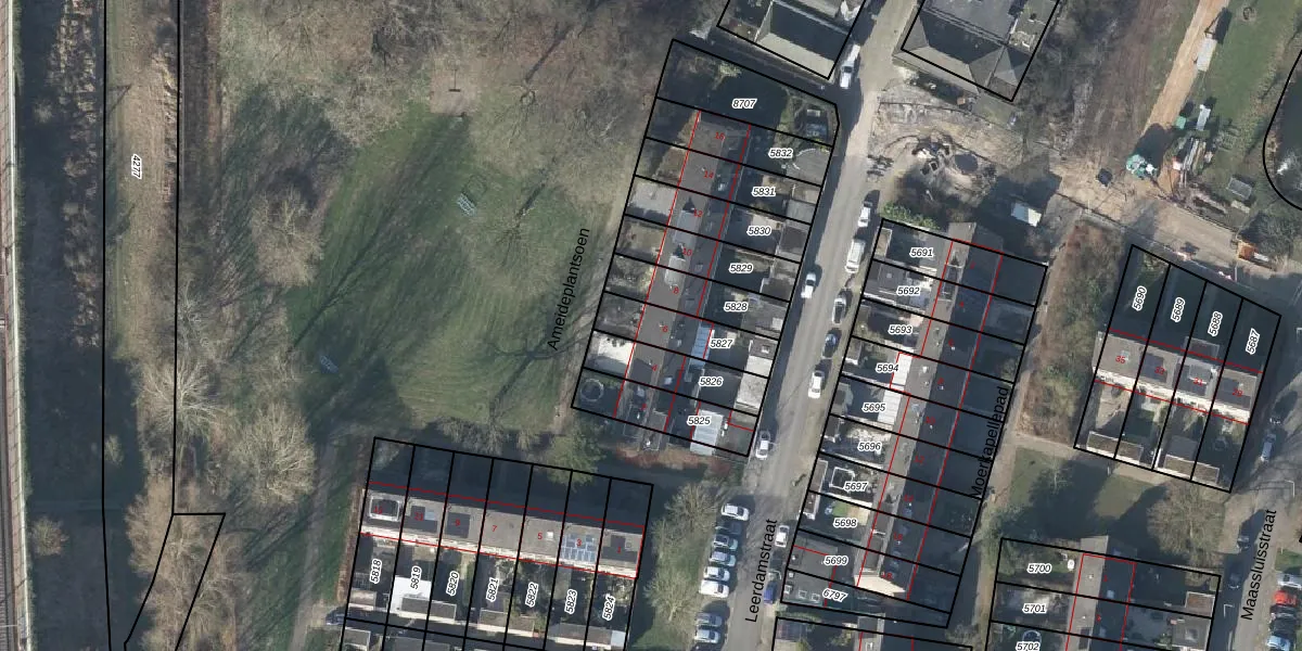 Gebruik de zoekbalk of klik op een perceel voor informatie over de adressen binnen dit perceel.