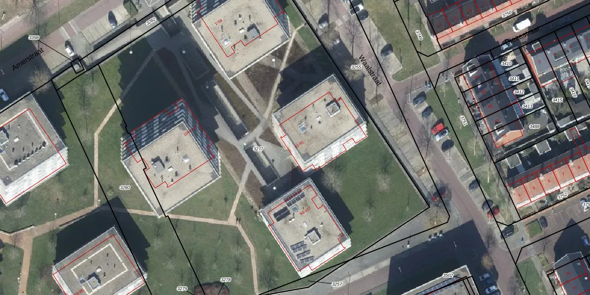 Het perceel waarop Amerstraat 75 staat heeft een oppervlakte van 7477 m². Dit is een zeer groot perceel. De perceeloppervlakte wordt geregistreerd door het Kadaster. Gedetailleerde informatie over de maten van dit perceel kunt u vinden in het rapport Kadastrale kaart met maatvoering van Amerstraat 75.