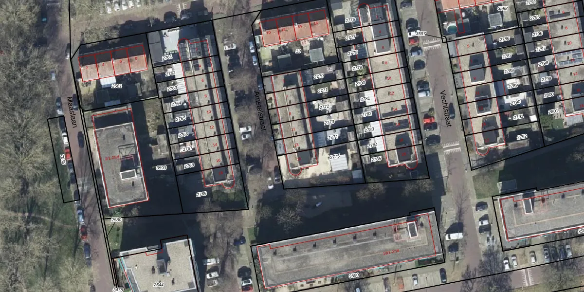 Gebruik de zoekbalk of klik op een perceel voor informatie over de adressen binnen dit perceel.