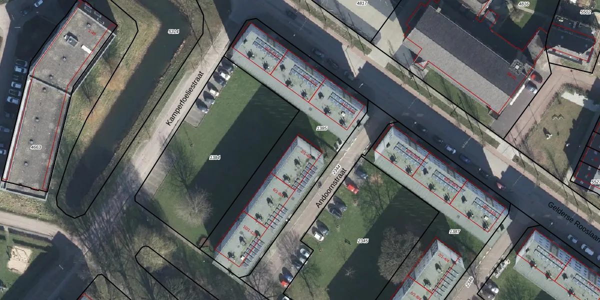Het perceel waarop Andoornstraat 2-4 staat heeft een oppervlakte van 1845 m². Dit is een zeer groot perceel. De perceeloppervlakte wordt geregistreerd door het Kadaster. Gedetailleerde informatie over de maten van dit perceel kunt u vinden in het rapport Kadastrale kaart met maatvoering van Andoornstraat 2-4.