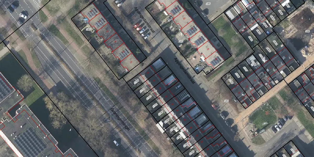 Het perceel waarop Appingedamstraat 26 staat heeft een oppervlakte van 171 m². Dit is een middelgroot perceel. De perceeloppervlakte wordt geregistreerd door het Kadaster. Gedetailleerde informatie over de maten van dit perceel kunt u vinden in het rapport Kadastrale kaart met maatvoering van Appingedamstraat 26.