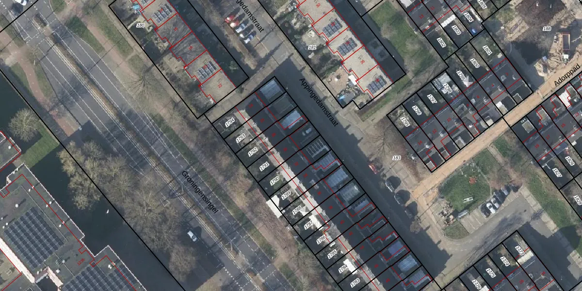 Het perceel waarop Appingedamstraat 30 staat heeft een oppervlakte van 171 m². Dit is een middelgroot perceel. De perceeloppervlakte wordt geregistreerd door het Kadaster. Gedetailleerde informatie over de maten van dit perceel kunt u vinden in het rapport Kadastrale kaart met maatvoering van Appingedamstraat 30.