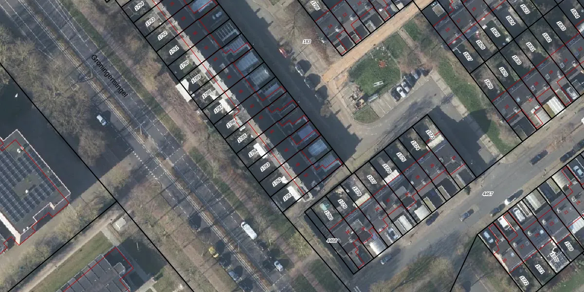 Gebruik de zoekbalk of klik op een perceel voor informatie over de adressen binnen dit perceel.