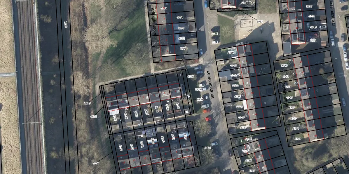 Gebruik de zoekbalk of klik op een perceel voor informatie over de adressen binnen dit perceel.