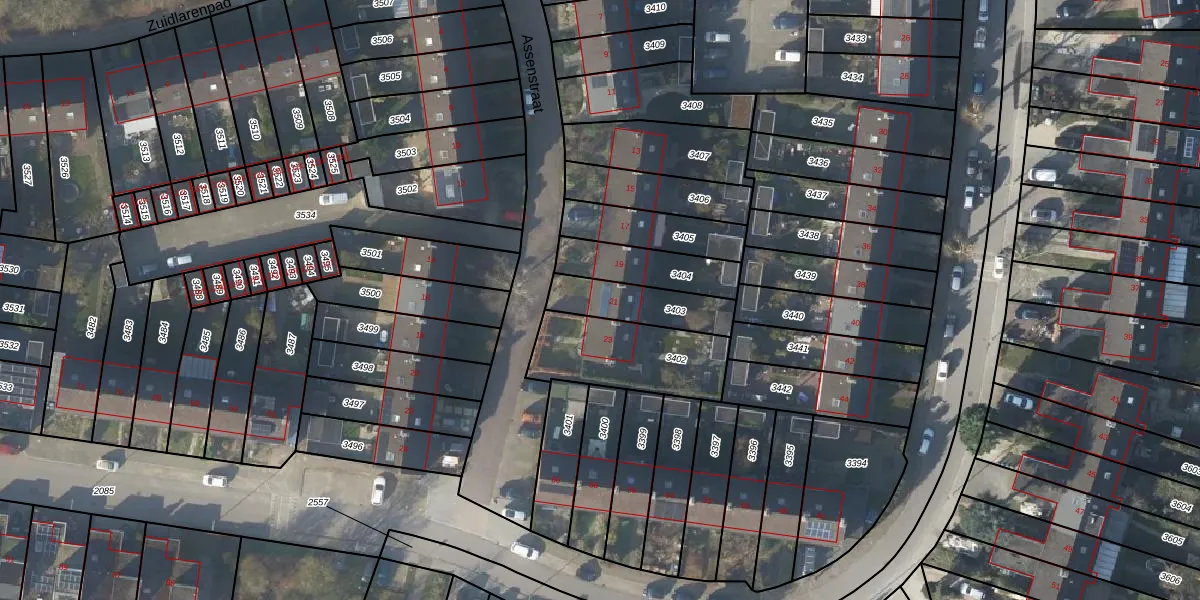 Gebruik de zoekbalk of klik op een perceel voor informatie over de adressen binnen dit perceel.