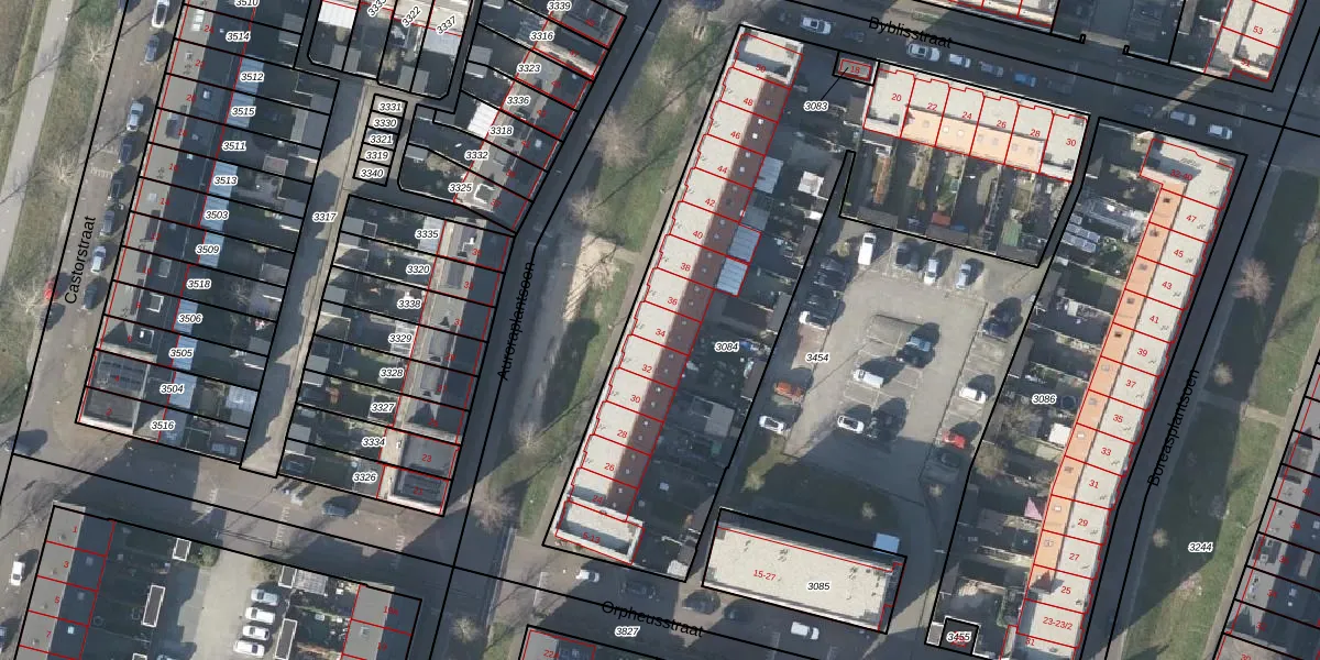Het perceel waarop Auroraplantsoen 34 staat heeft een oppervlakte van 2634 m². Dit is een zeer groot perceel. De perceeloppervlakte wordt geregistreerd door het Kadaster. Gedetailleerde informatie over de maten van dit perceel kunt u vinden in het rapport Kadastrale kaart met maatvoering van Auroraplantsoen 34.