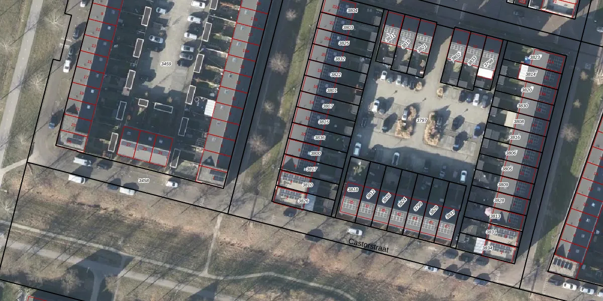 Gebruik de zoekbalk of klik op een perceel voor informatie over de adressen binnen dit perceel.