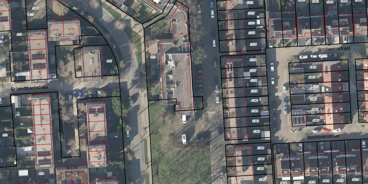 Het perceel waarop Baakhovenstraat 17 staat heeft een oppervlakte van 1233 m². Dit is een zeer groot perceel. De perceeloppervlakte wordt geregistreerd door het Kadaster. Gedetailleerde informatie over de maten van dit perceel kunt u vinden in het rapport Kadastrale kaart met maatvoering van Baakhovenstraat 17.