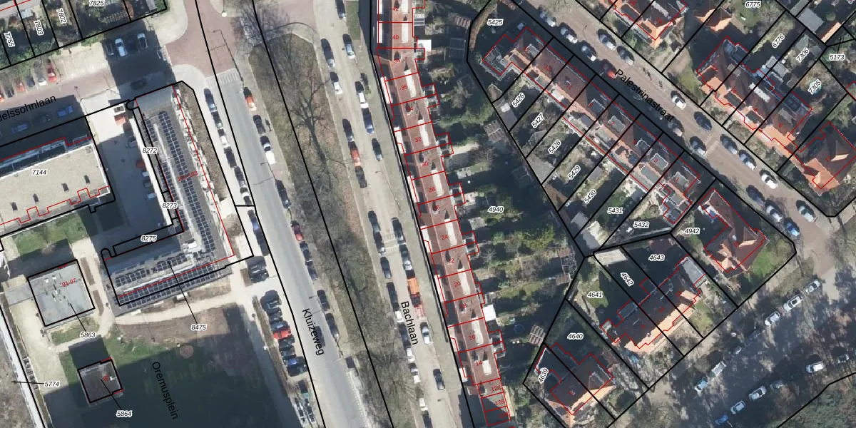 Het perceel waarop Bachlaan 26 staat heeft een oppervlakte van 3405 m². Dit is een zeer groot perceel. De perceeloppervlakte wordt geregistreerd door het Kadaster. Gedetailleerde informatie over de maten van dit perceel kunt u vinden in het rapport Kadastrale kaart met maatvoering van Bachlaan 26.