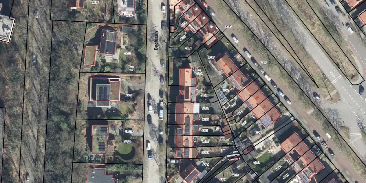 Het perceel waarop Bachlaan 76 staat heeft een oppervlakte van 260 m². Dit is een middelgroot perceel. De perceeloppervlakte wordt geregistreerd door het Kadaster. Gedetailleerde informatie over de maten van dit perceel kunt u vinden in het rapport Kadastrale kaart met maatvoering van Bachlaan 76.