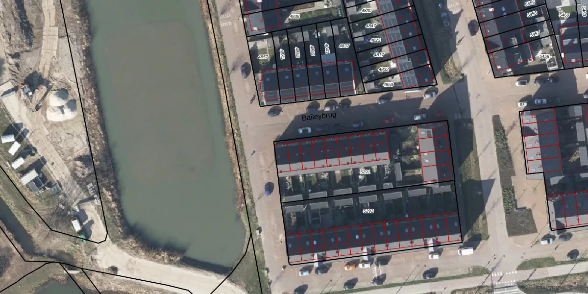 Het perceel waarop Baileybrug 4 staat heeft een oppervlakte van 1240 m². Dit is een zeer groot perceel. De perceeloppervlakte wordt geregistreerd door het Kadaster. Gedetailleerde informatie over de maten van dit perceel kunt u vinden in het rapport Kadastrale kaart met maatvoering van Baileybrug 4.