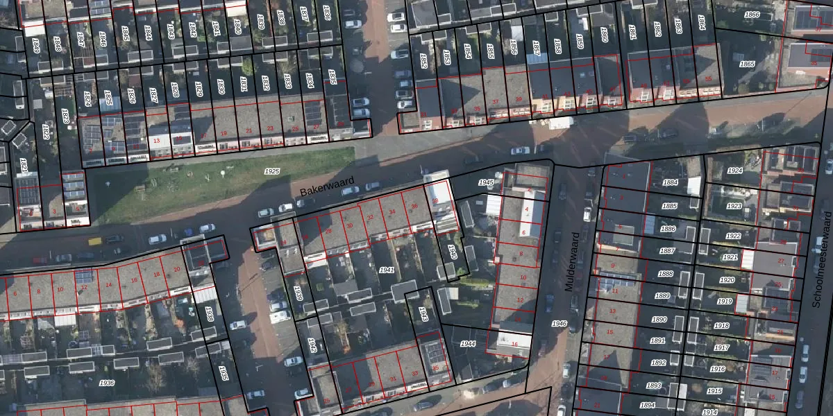 Het perceel waarop Bakerwaard 36 staat heeft een oppervlakte van 1992 m². Dit is een zeer groot perceel. De perceeloppervlakte wordt geregistreerd door het Kadaster. Gedetailleerde informatie over de maten van dit perceel kunt u vinden in het rapport Kadastrale kaart met maatvoering van Bakerwaard 36.