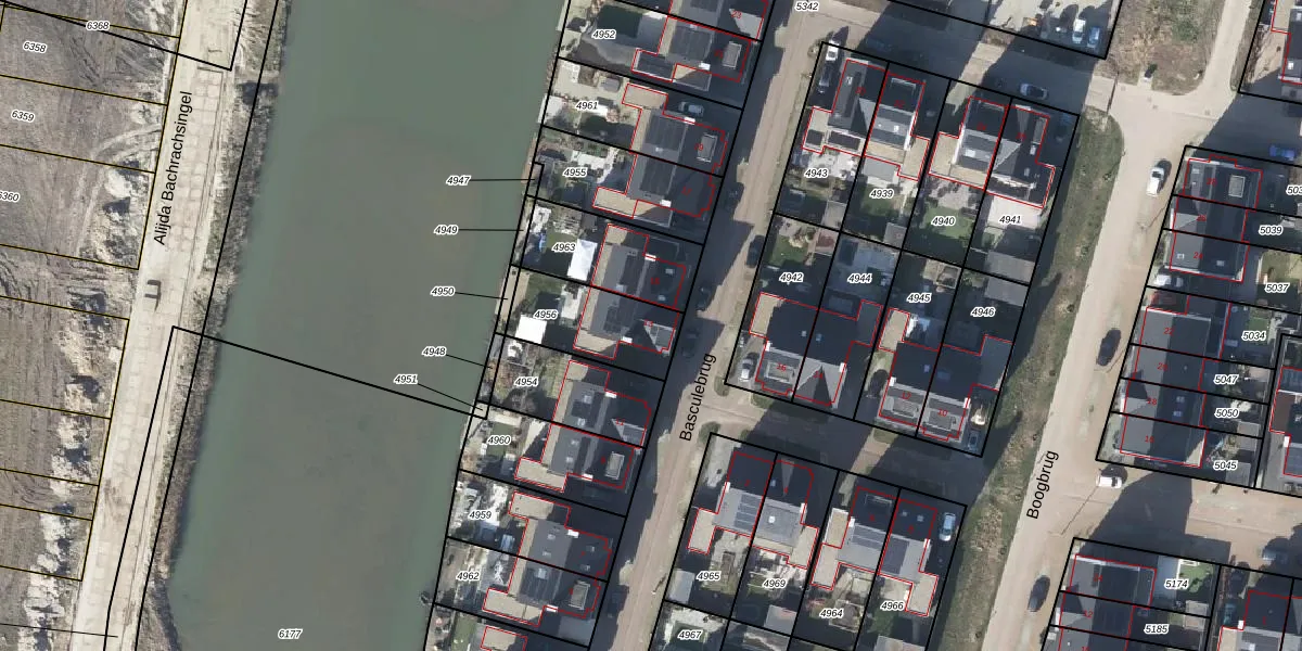 Het perceel waarop Basculebrug 13 staat heeft een oppervlakte van 281 m². Dit is een middelgroot perceel. De perceeloppervlakte wordt geregistreerd door het Kadaster. Gedetailleerde informatie over de maten van dit perceel kunt u vinden in het rapport Kadastrale kaart met maatvoering van Basculebrug 13.