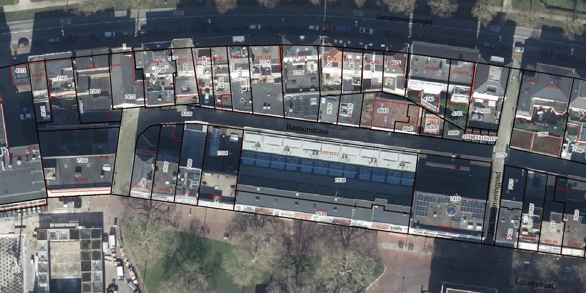Het perceel waarop Bastionstraat 11-9 staat heeft een oppervlakte van 1254 m². Dit is een zeer groot perceel. De perceeloppervlakte wordt geregistreerd door het Kadaster. Gedetailleerde informatie over de maten van dit perceel kunt u vinden in het rapport Kadastrale kaart met maatvoering van Bastionstraat 11-9.