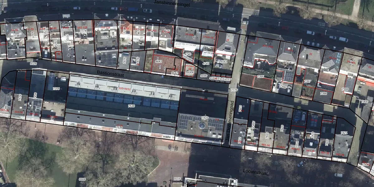 Het perceel waarop Bastionstraat 13-A staat heeft een oppervlakte van 706 m². Dit is een groot perceel. De perceeloppervlakte wordt geregistreerd door het Kadaster. Gedetailleerde informatie over de maten van dit perceel kunt u vinden in het rapport Kadastrale kaart met maatvoering van Bastionstraat 13-A.