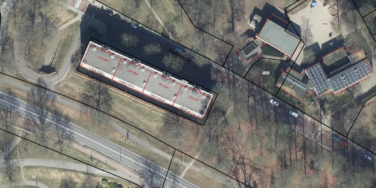 Het perceel waarop Bauerstraat 27-1 staat heeft een oppervlakte van 1380 m². Dit is een zeer groot perceel. De perceeloppervlakte wordt geregistreerd door het Kadaster. Gedetailleerde informatie over de maten van dit perceel kunt u vinden in het rapport Kadastrale kaart met maatvoering van Bauerstraat 27-1.