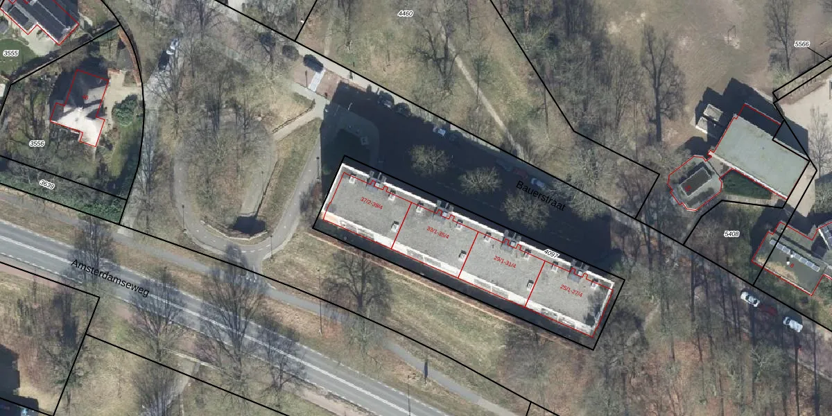 Het perceel waarop Bauerstraat 33-D staat heeft een oppervlakte van 1380 m². Dit is een zeer groot perceel. De perceeloppervlakte wordt geregistreerd door het Kadaster. Gedetailleerde informatie over de maten van dit perceel kunt u vinden in het rapport Kadastrale kaart met maatvoering van Bauerstraat 33-D.