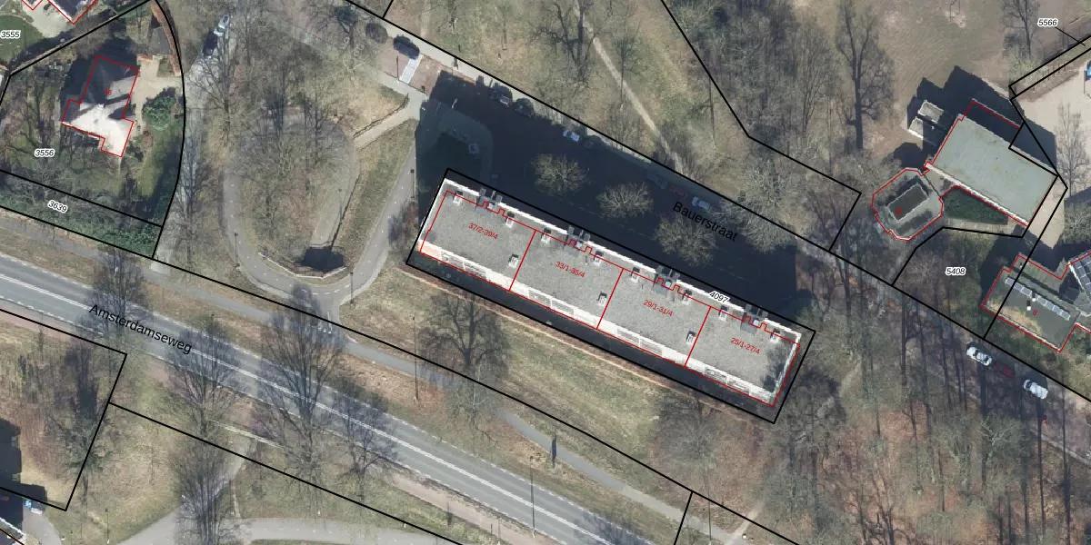 Het perceel waarop Bauerstraat 35-3 staat heeft een oppervlakte van 1380 m². Dit is een zeer groot perceel. De perceeloppervlakte wordt geregistreerd door het Kadaster. Gedetailleerde informatie over de maten van dit perceel kunt u vinden in het rapport Kadastrale kaart met maatvoering van Bauerstraat 35-3.